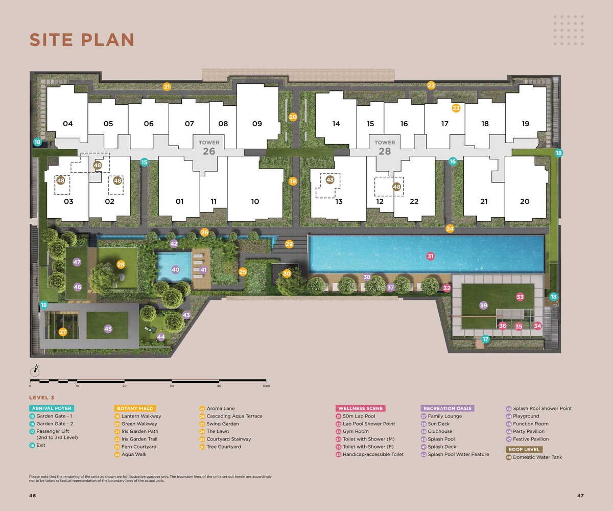 The development is designed to offer an extensive range of amenities both inside and outside the property. The internal amenities include various walkways, garden trails, and social spaces like Party and Festive Pavilions, Family Lounge, and Clubhouse for residents to hold parties and gatherings. The commercial spaces are set aside for a supermarket and retail units to supplement residents’ daily needs.