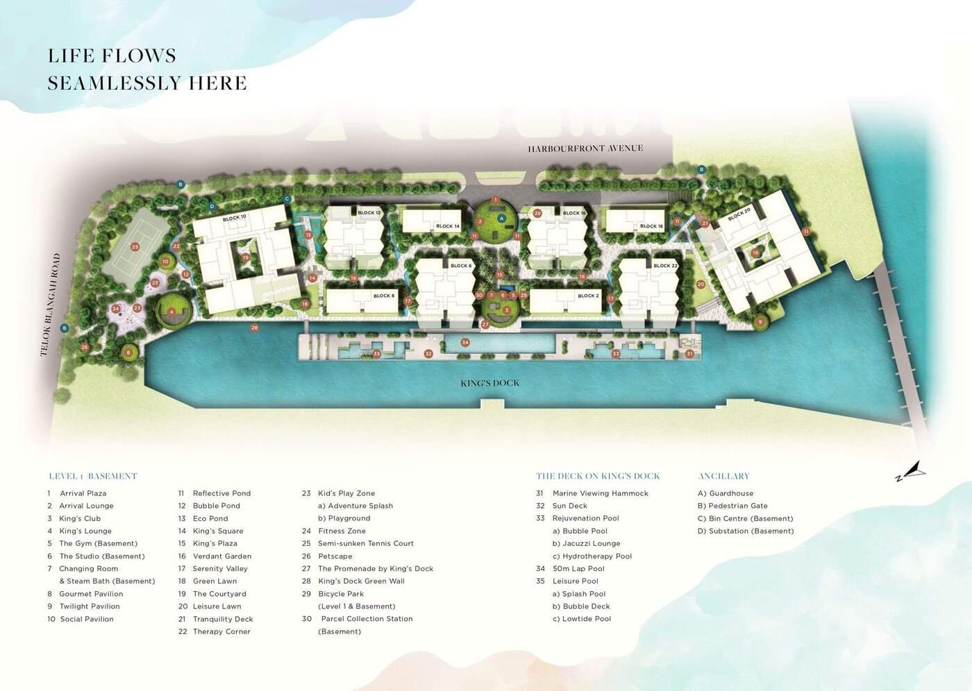 The Reef at King's Dock is a highly sought-after 99-year leasehold condo development located within the Greater Southern Waterfront. The development comprises of 10 residential blocks, housing a total of 429 apartments. The Reef at King's Dock is unique in that it offers residents a 180m-long floating deck, which features a variety of pools catering to all ages, as well as a Marine Viewing deck, where residents can observe the vibrant marine life.